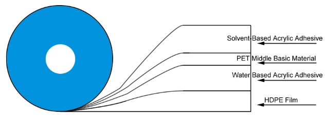 Exposed side adhesive: Solvent-based acrylic adhesive